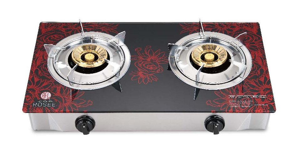 ROSEE CODE:LPG -828493 NG- 828494 Tempered Glass Top Panel 90mm & 25mm Brass Burner Cap 50000 Times Auto lgnition Tornado Blue Flame Rated Thermal Flow (KW)-3.4/3.4 Size-720mmX380mmX115mm
